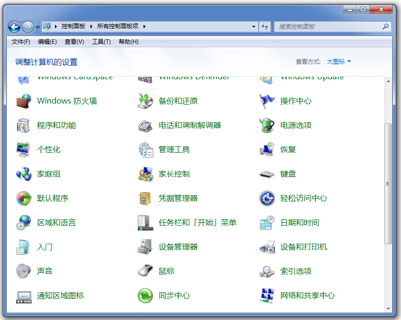 1、点击打开控制面板,选择【查看方式】为大图标,找到并点击【网络和共享中心】,如图,