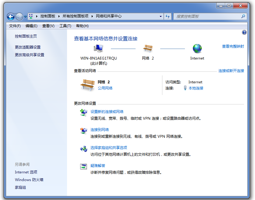 2、进入以下界面,点击左侧的【更改适配器设置】,如图,