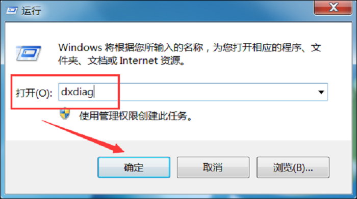 1、点按快捷键【Windows+R】,打开运行对话框,输入dxdiag,回车,启用DirectX诊断工具,