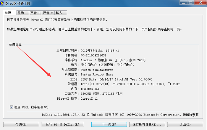 2、如图,点击上方的【系统】标签,即可查看系统信息,了解电脑配置。
