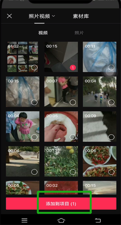 在手机中打开剪映APP,进入界面,点击【开始创作】,然后选择一个视频素材,点击【添加到项目】,