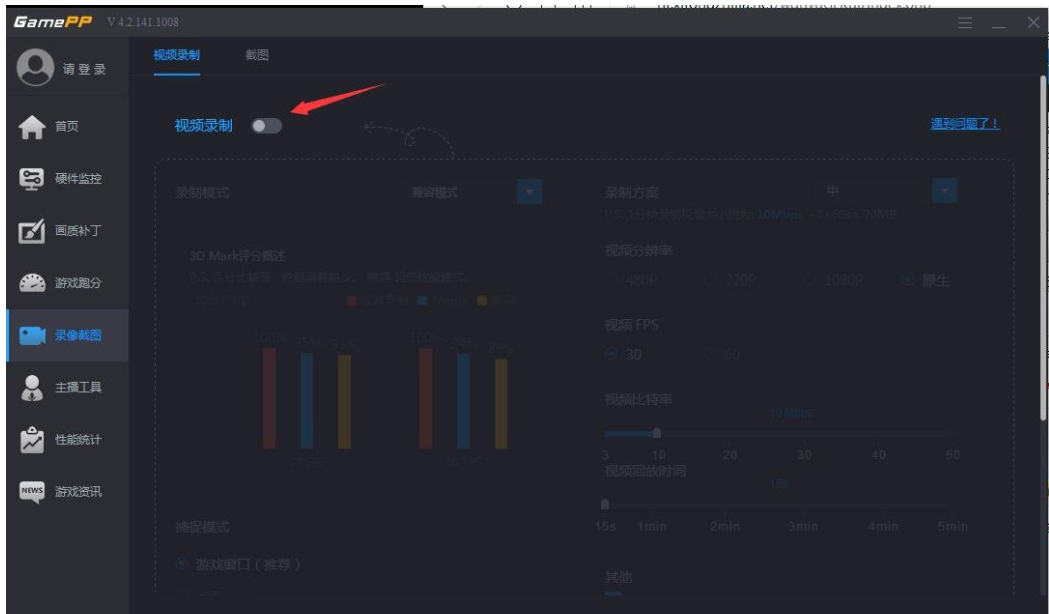进入以下界面,点击【视频录制】,该功能此时处于关闭状态,选择开启该功能,