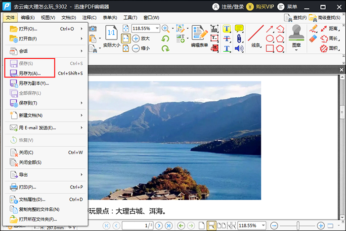 回到软件主页,在菜单栏中点击【文件】——【另存为】,即可保存导出PDF文件。