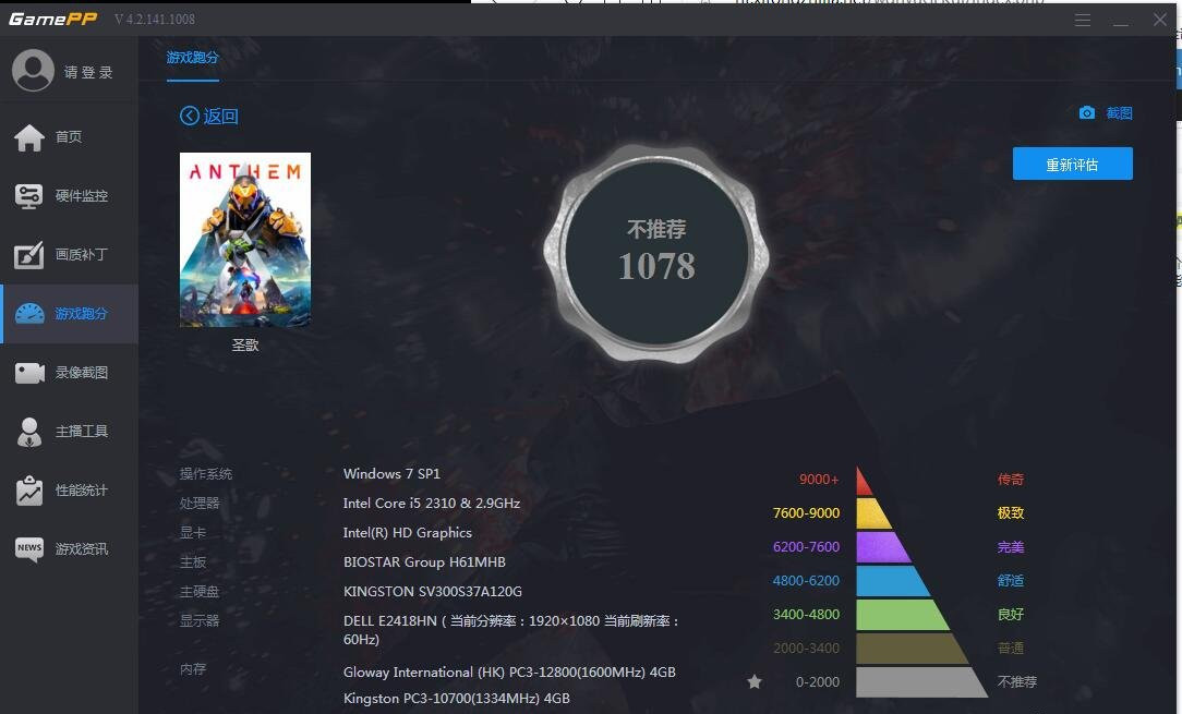 5、测试过程中可能会出现卡顿,耐心等待片刻,测试完毕,游戏加加会根据电脑跑分来决定是否推荐游戏;如果你不满意测评结果,还可以点击【重新评估】。