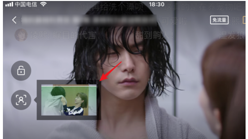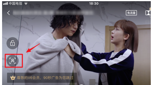 现在开始全屏播放视频,点击屏幕任意位置,然后点击窗口左侧的人脸识别图标,请看箭头指示,
