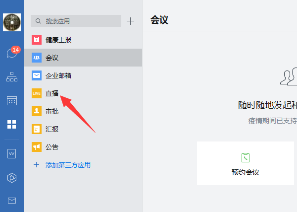 打开企业微信,登录账号,进入主页,点击下方的【工作台】,选择【直播】功能,