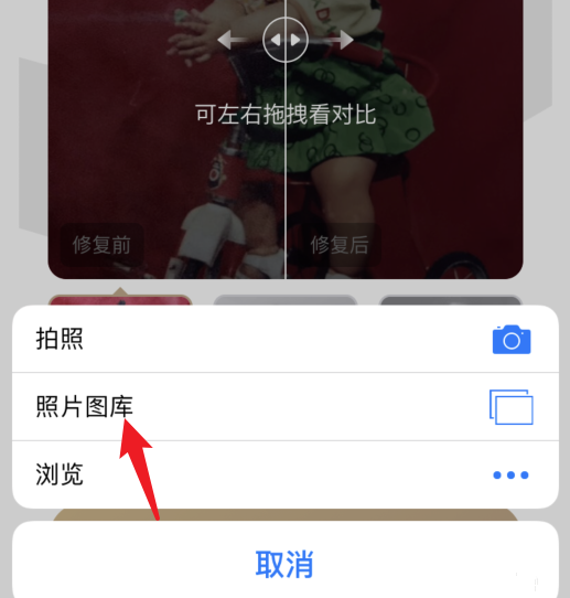 进入图库中,勾选需要修复的照片,点击右上方的完成,软件即会自动进行修复,耐心等待,