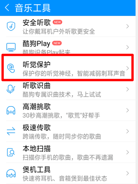 如何开启酷狗音乐听觉保护功能?