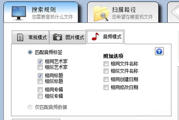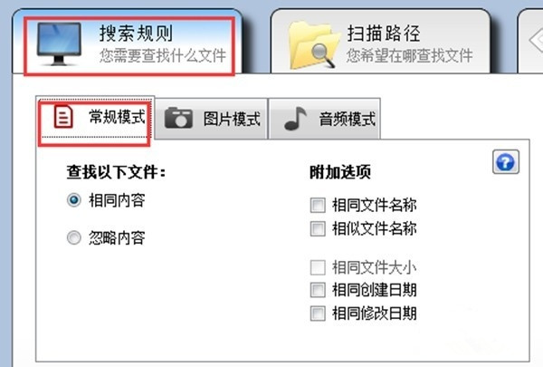点击【搜索规则】,展开面板,这里有三种模式,分别点击查看【常规模式】、【图片模式】【音频模式】,