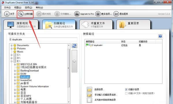 点击【扫描路径】,自行选择软件扫描区域,接着点击工具栏中的【立即扫描】,软件即可搜索查找重复图片,结果显示为浅蓝色的便是重复项,