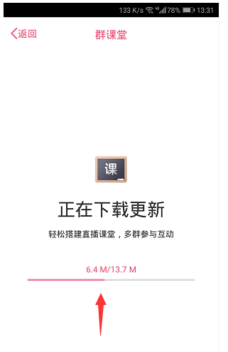 点开【群课堂】功能,需要进行下载更新,耐心等待,