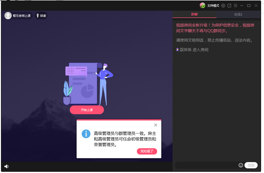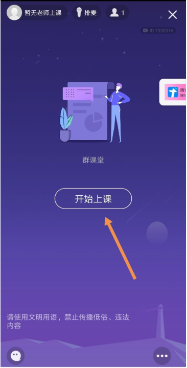 进入直播房间,可以点击【开始上课】,