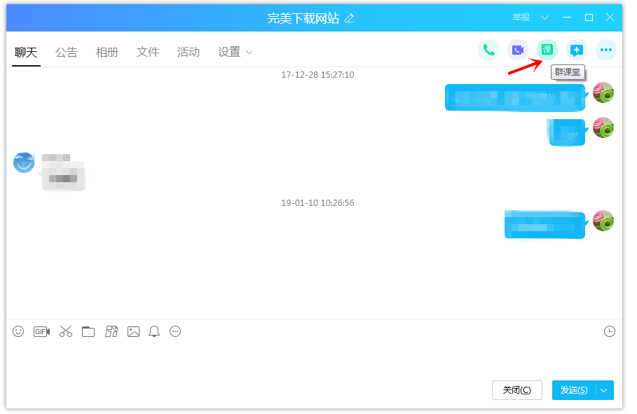 进入群聊窗口,点击右上角的【群课堂】功能,需要加载群课堂组件,请等待,