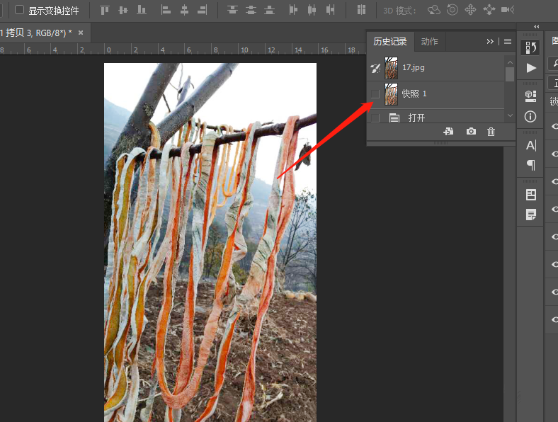 调出历史记录面板,如图,点击箭头指示的【快照】功能,