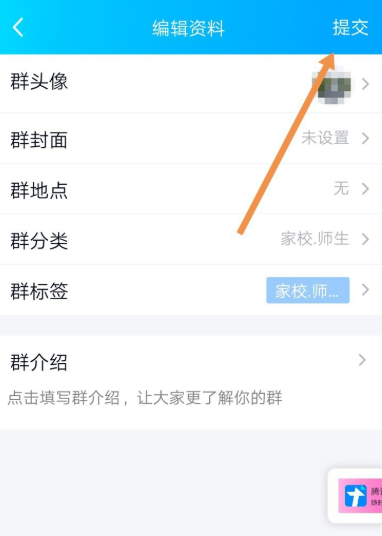 如图,将【群分类】修改为【家校.师生】,回到之前界面,点击【提交】即可,