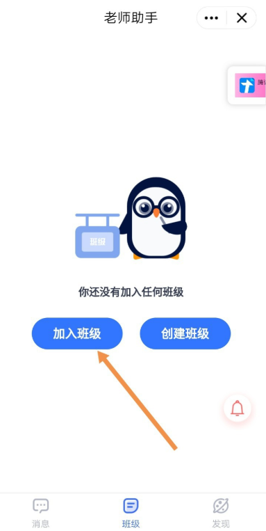 下面简单介绍如何在QQ家校群中加入班级,打开QQ家校群,如图,点击下方的【老师助手】,