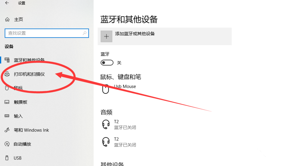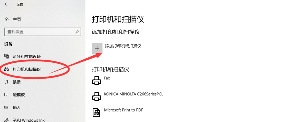 在左侧窗口点击【设备】——【打印机和扫描仪】,接着点击【添加打印机或扫描仪】,如图,