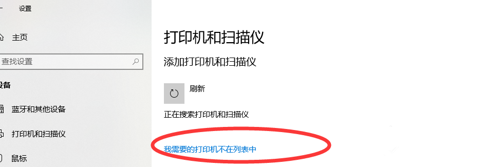 正在搜索中,这里会有提示,如图,点击【我需要的打印机不在列表中】,