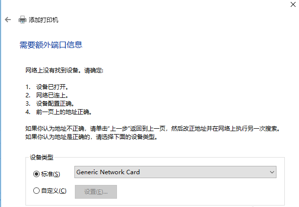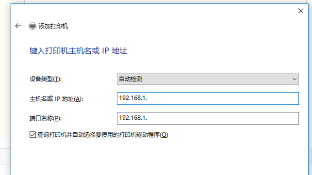 进入以下界面,如图,输入打印机IP地址,继续进行下一步,阅读相关信息,选择设备类型,