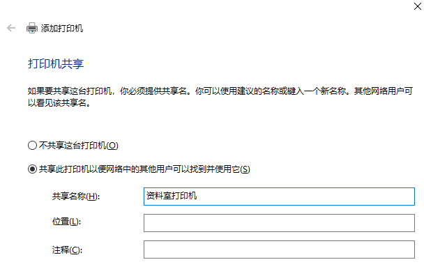 如果你想要共享这台打印机,勾选【共享此打印机】,进行相关设置,如图,