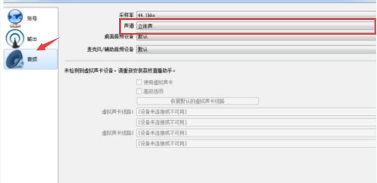 3、接着切换到音频的界面,点击“音频”,选择声道的输出方式,我们一般会选择立体声,这样听众听起来的听觉体验会更佳,