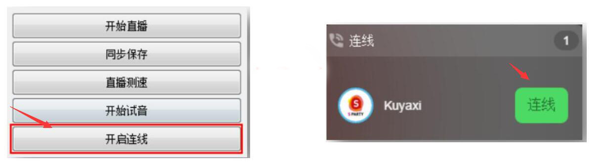 5、试听完成,还可以点击荔枝FM直播助手的“开启连线”,自行选择帮助自己测试的听众进行调试,以达到自己想要的节目效果,