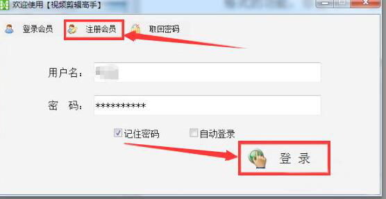 1、首先打开视频剪辑高手,在它的登录页面,先注册会员,然后输入个人信息后点击“登录”。