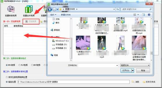 3、接下来,点击“添加视频”,在电脑中批量选择需要转换格式的视频打开,从而导入到视频剪辑高手中。