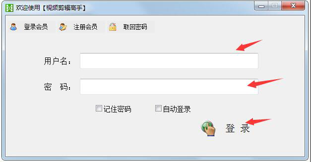 1、首先打开视频剪辑高手,在登录界面,正确填写自己的用户名和密码,点击“登录”,
