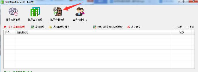2、在视频剪辑高手的主界面中,点击“批量剪辑视频”的功能项,从而切换到剪辑的界面,