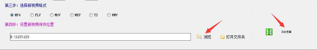 5、然后,在视频剪辑高手中点击“浏览”,设置新视频的保存位置,并且点击“开始剪辑”,