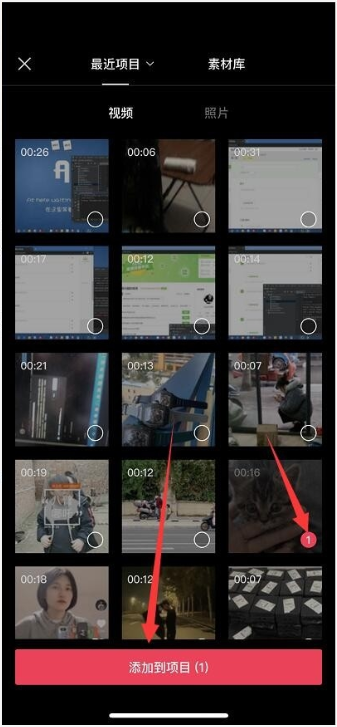 进入手机图库,选择需要处理的视频文件,然后点击【添加到项目】,
