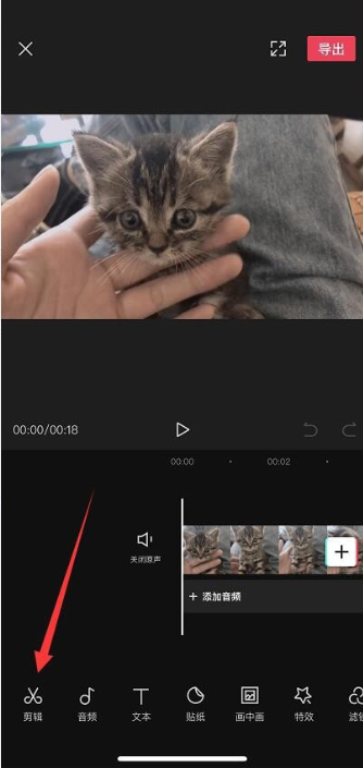 视频导入成功,弹出处理窗口,如图,点击最下边的【剪辑】选项,