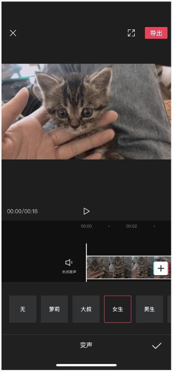 如图,选择自己喜欢的声音类型,然后打勾,点击【导出】,即可保存视频。