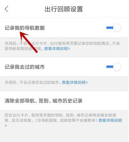 点击【记录我的导航数据】,查看这一功能是否开启,如果处于关闭状态,将其打开。
