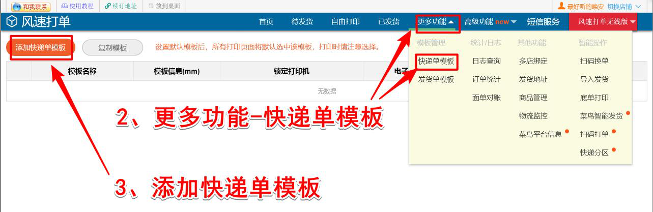 开通电子面单后,接下来,需要对快递单的模板进行设置。