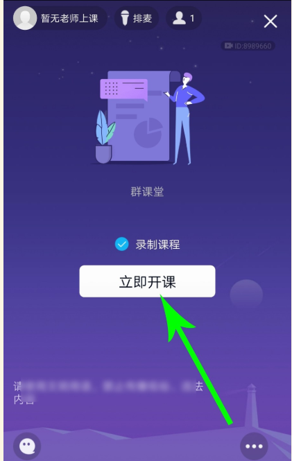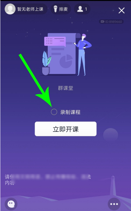进入群课堂直播窗口,如图,勾选【录制课程】,接着点击【立即开课】;一旦开始直播,系统会自动录制屏幕内容,并在直播结束后生成课程回放视频。