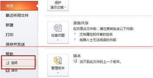 3、接下来打开ppt文档,点击“文件”——“选项”,如下图: