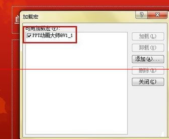 6、返回加载宏界面就可以看到刚才添加的ppt动画大师了,如下图: