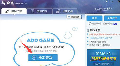 3、重启玲珑网游加速器,然后登录个人中心,再添加游戏。不然,玲珑网游加速器也是没有效果的。