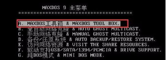 1、电脑插入U盘,进入U盘启动盘界面,选择“MdxDos工具箱”并按回车键,如下图: