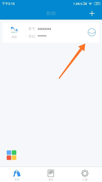 7、这样,我们就成功的在闪灵密保APP中添加了新的密码。密码会默认隐藏,点击右侧眼睛图标即可显示/隐藏密码。