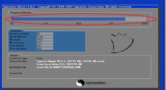 4、电脑就会重启并自行开始备份系统,等待进度条完成后,会再次自行重启电脑。