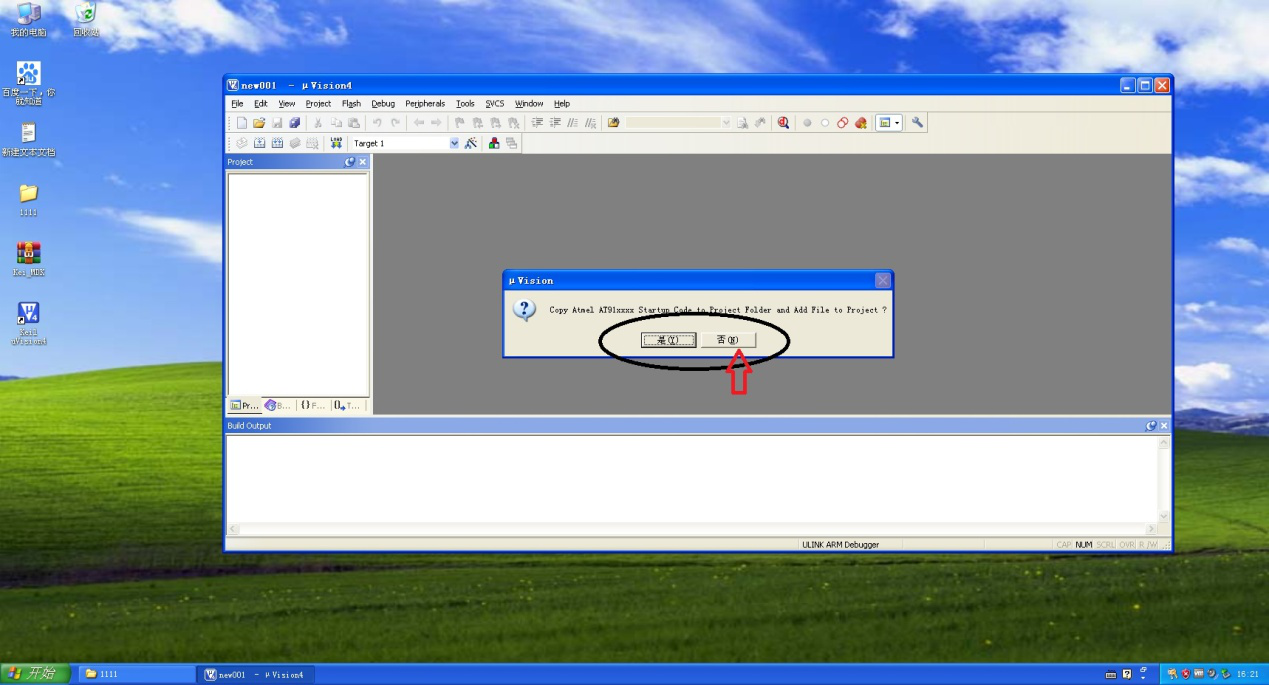 6、之后会弹出如图对话框,这个对话框意思是是否将选择的单片机模型加入新建工程。这里既可以点【是】,也可以点【否】。一般选择【否】。