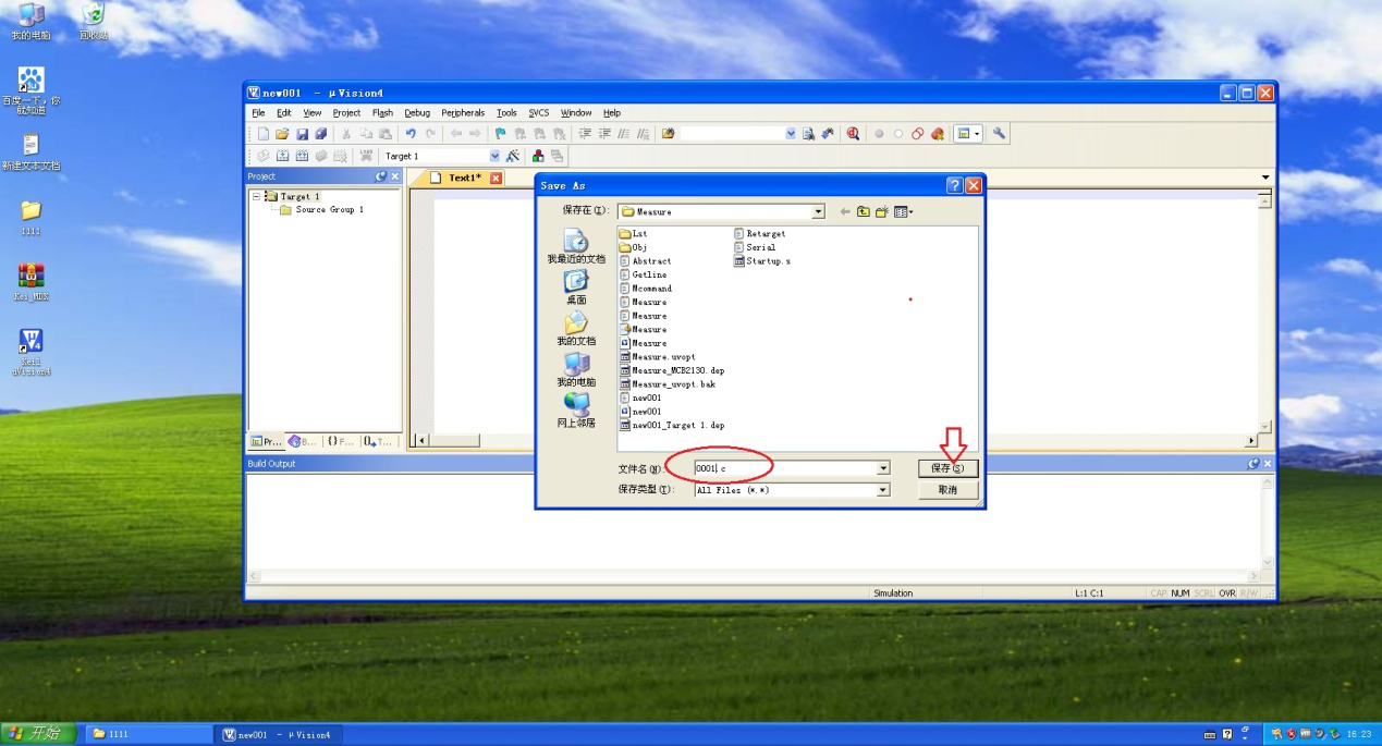 9、在之后弹出的对话框中,选择文件保存位置,编写文件名(比如这里是00001.c),注意文件名后缀为“.c”,最后点击【保存】。