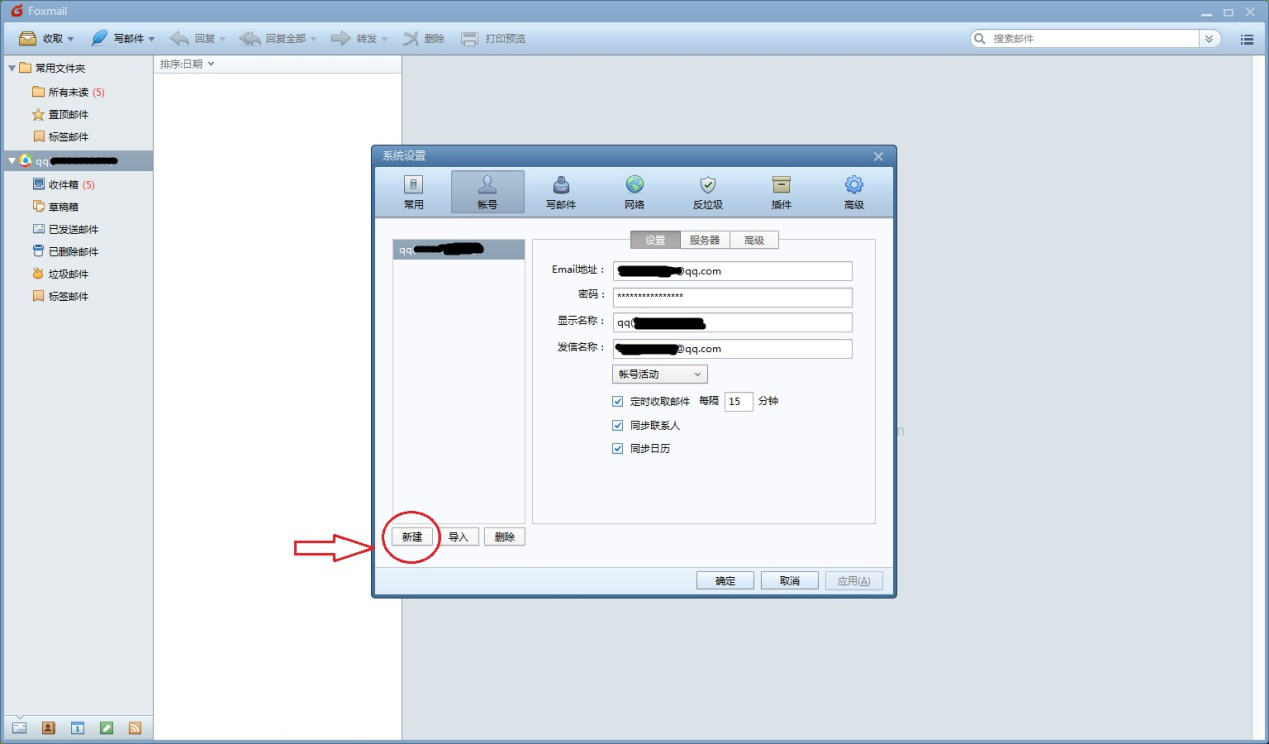 12、就会看到刚刚使用的QQ账号已经导入到foxmail邮箱客户端的账户里。然后可以点击左下角【创建】,继续添加账户,步骤同上。