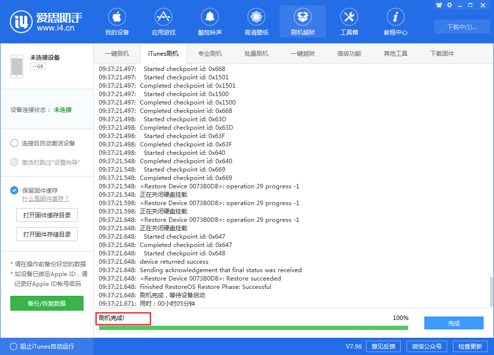 3、软件即可自动进行刷机,在此过程中一定保持数据线连接,等待刷机完成,刷机完成,设备将自动开机;