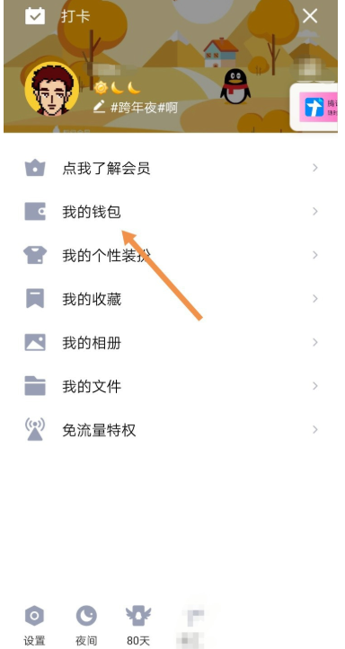 滑动页面,展开选项,如图,点击【我的钱包】,