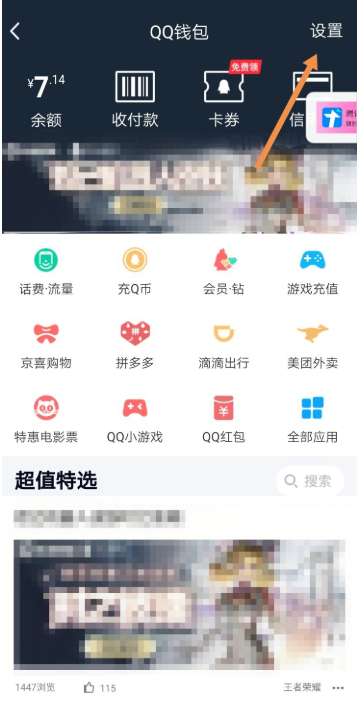 打开QQ钱包,如图,点击右上角的【设置】选项,