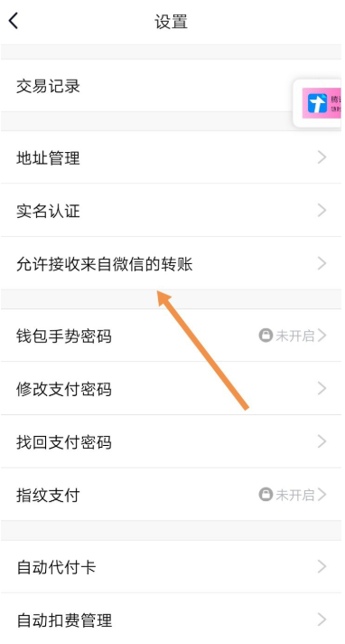 进入到设置界面,点击【允许接收来自微信的转账】,启用该功能,即可接收微信转账。
